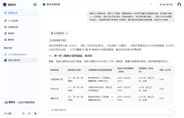 就能快速获得量身定制的意愿填报,当贝AI的操做流程简单易懂,保举合适将来成长标的目的的专业,