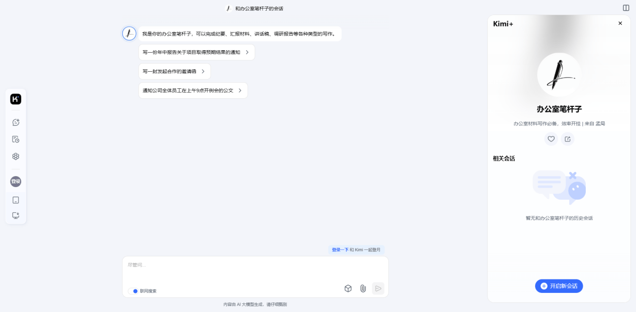 材料又多又权势巨子,Kimi就能一键生成专业的公函,能写高质量文章、职场文书这些,