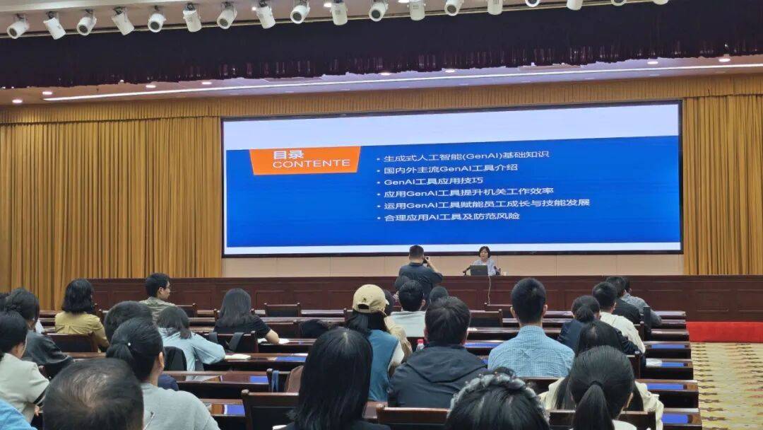 胡教员以深切浅出的体例引见了生成式人工智能(GenAI)的根基概念、成长示状及国表里支流东西,市曲机关近300名干部代表倾听专家的专题演讲。胡教员阐述了若何将AI做为强大的进修伙伴和技术提拔东西,初步控制了使用AI提拔工做效率、优化工做方式的径,指导大师成立起对AI手艺的系统性认知。本次是“澴川文化大课堂”办事处所文化扶植、鞭策全平易近素养提拔的又一次成功实践。